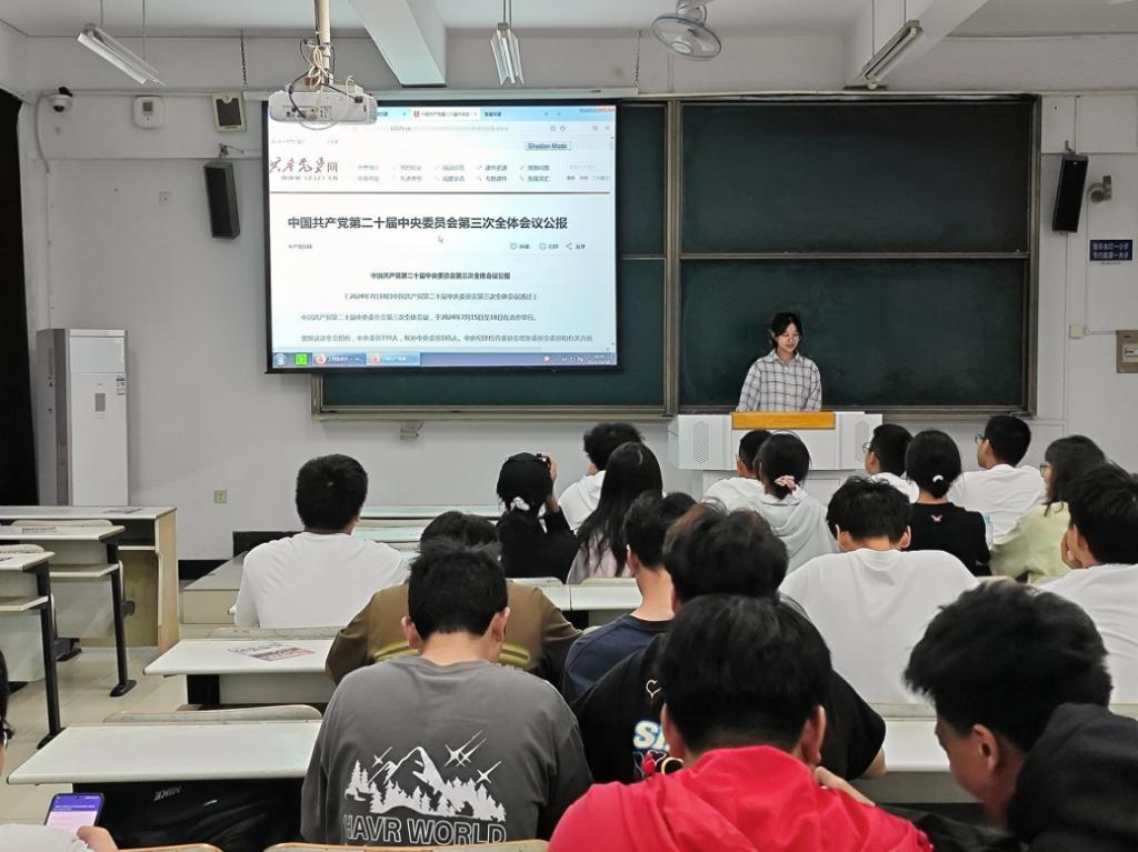 为深入学习贯彻党的二十届三中全会精神,深刻体会领悟习近平新时代中国特色社会主义思想,团结带领广大团员和青年“坚定不移听党话、跟党走”,持续凝聚青年力量,不断激发青年活力,色情a片各团支部开展“学习党的二十届三中全会精神”主题团日系列活动,切实增强共青团组织对青年学生的思想引领、加强对团员和青年的理论教育。