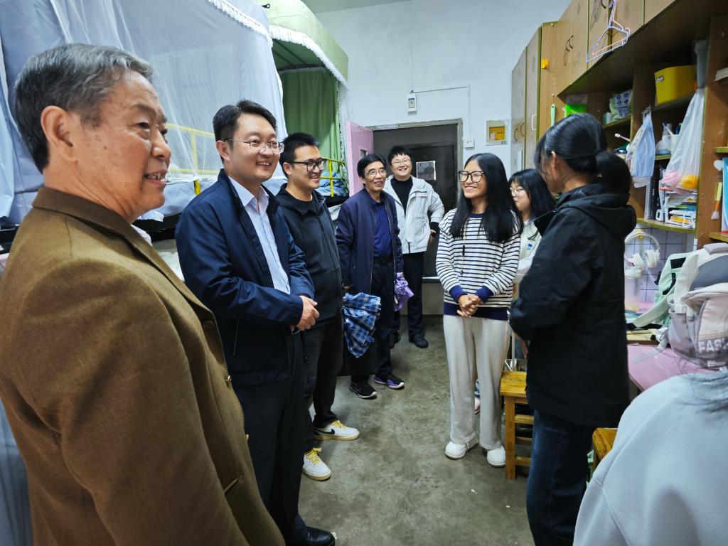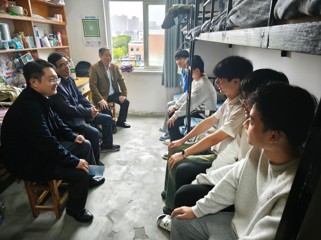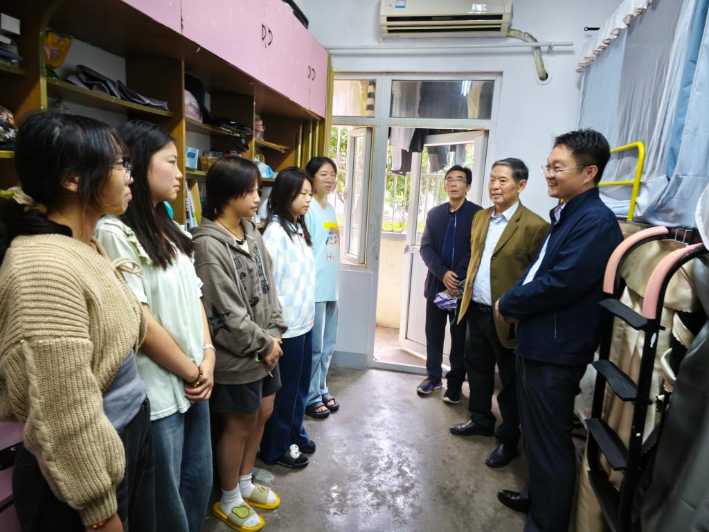 原党委书记蔡保兴、原院办主任钱文仲走访新生宿舍,与同学们进行面对面的亲切交流。学院党委书记张虎,团委书记崔余龙,新生辅导员刘天泉、葛丽君参加。