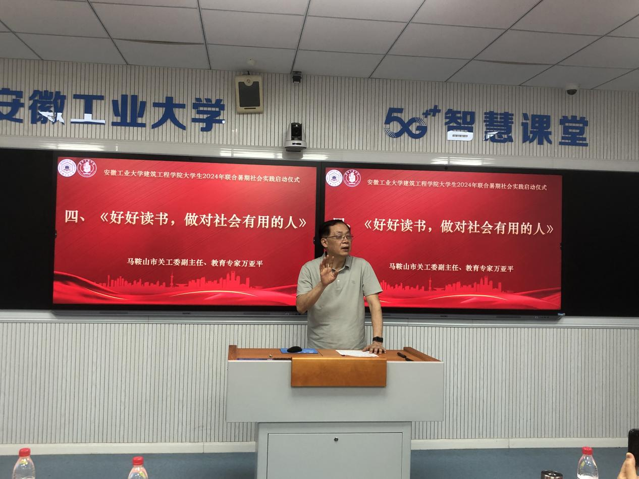 在秀山校区教D201智慧教室举办2024年大学生暑期社会实践启动仪式。马鞍山市关工委副主任万亚平,色情a片