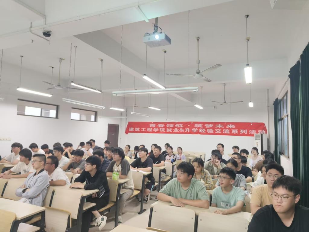 在建北505开展“青春领航·筑梦未来”就业&升学经验交流系列活动第二期——工程管理专业研考经验分享会,活动由2023级辅导员张腾飞主持,2021级工程管理专业三位优秀毕业生主讲,工程管理专业2023级全体学生参加。