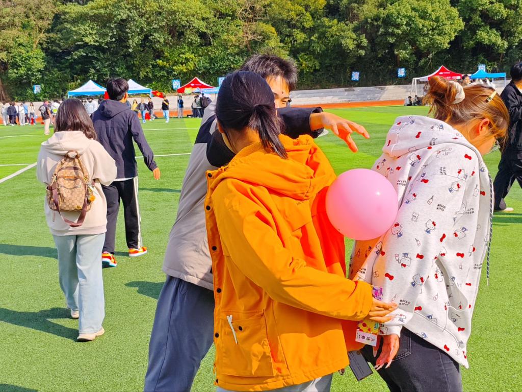 “背对背气球竞速”现场气氛热烈,同学们两两配合,在协作前行中培养默契,在欢声笑语中拉近距离,展现出建工学子团结协作、阳光向上的精神风貌。