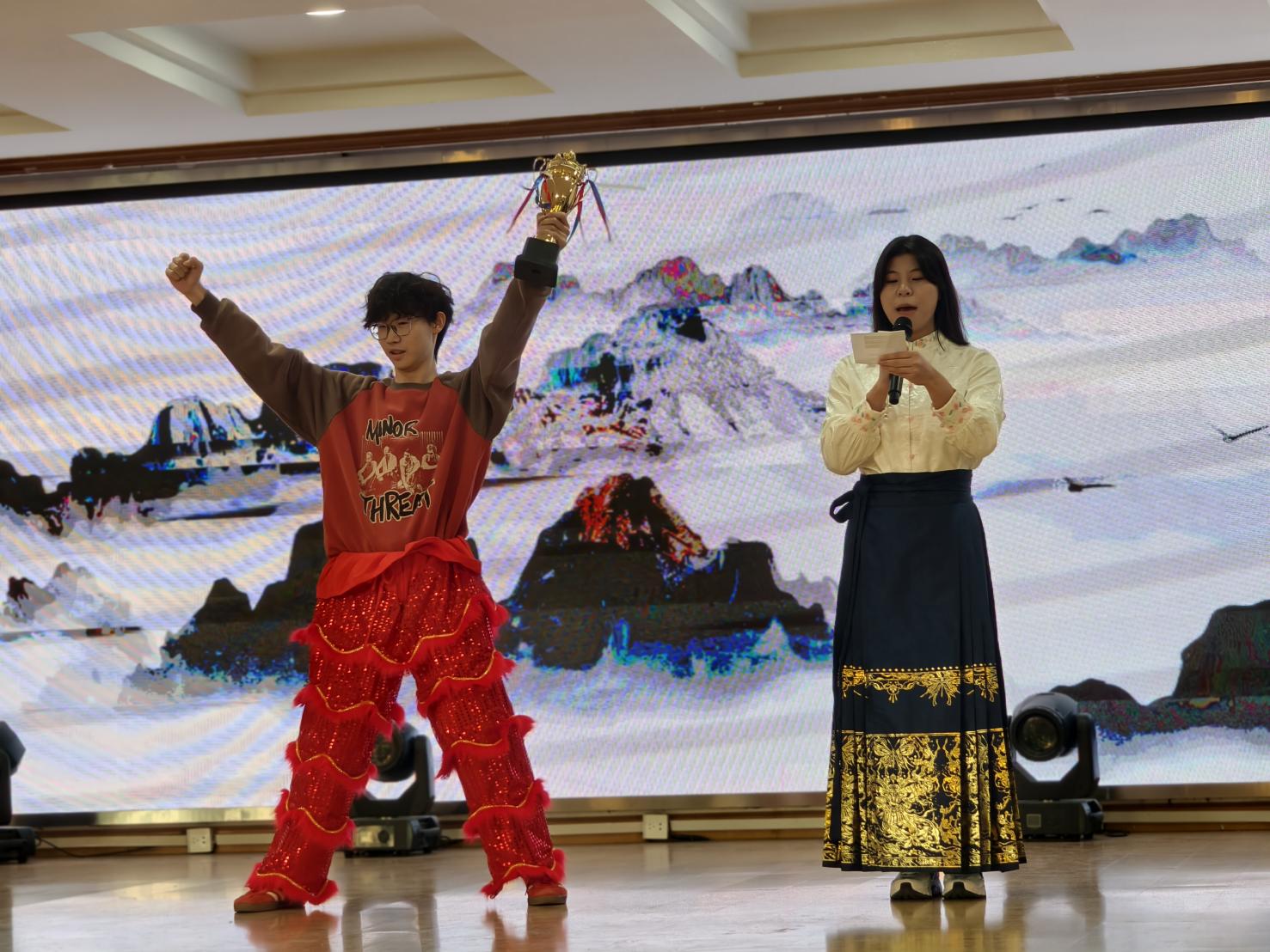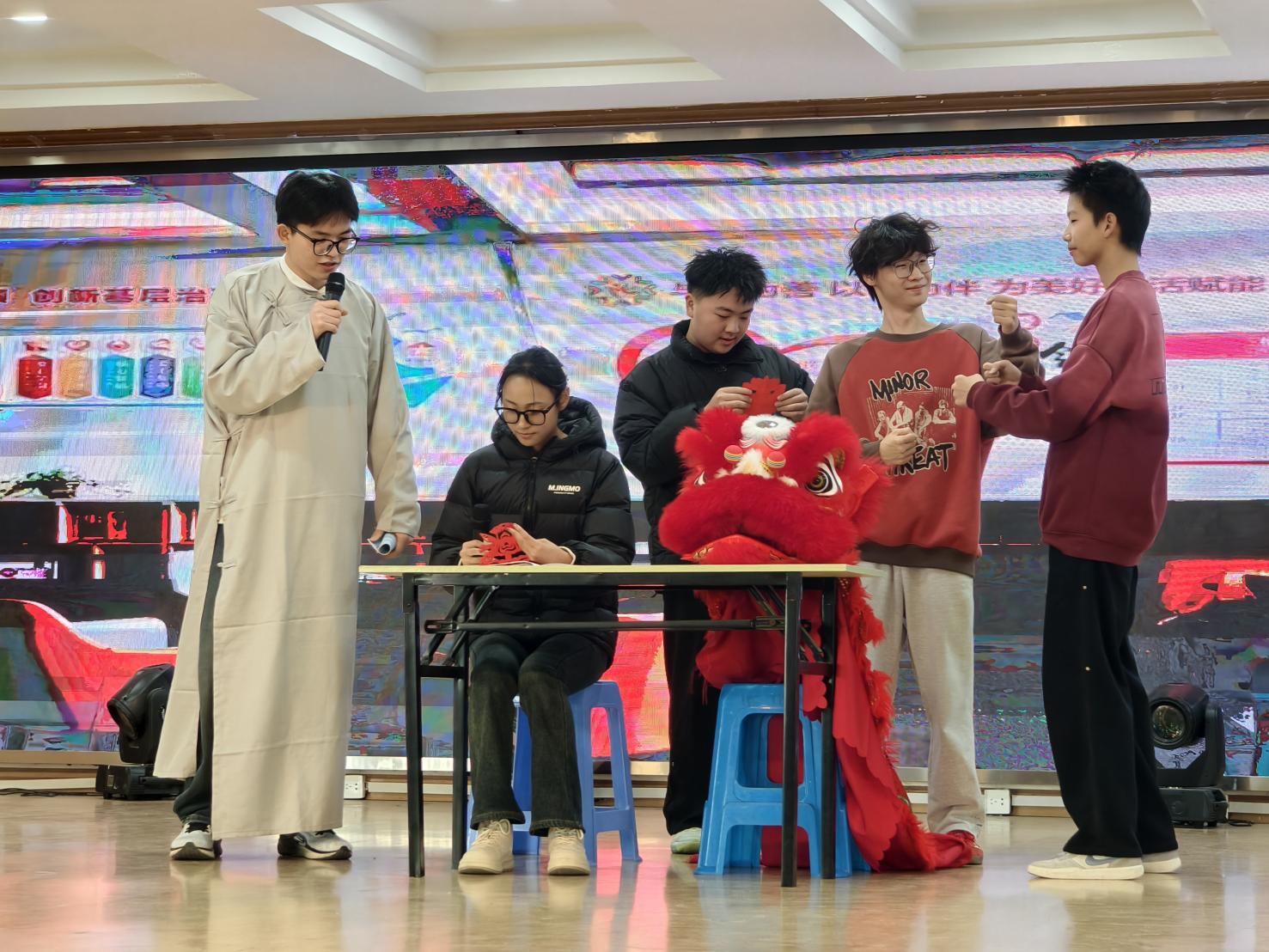 《醒狮·醒心》以国家级非物质文化遗产“醒狮”为精神意象,聚焦大学生在学业压力与现实挑战中产生的内心困惑,讲述主人公从迷茫困顿到受文化启迪、最终实现自我觉醒的成长故事。剧目通过“醒狮”与“醒心”的双关寓意,生动呈现了如何借助文化认同与价值追寻来应对焦虑、促进心灵成长,为观众带来积极的心理启发。
