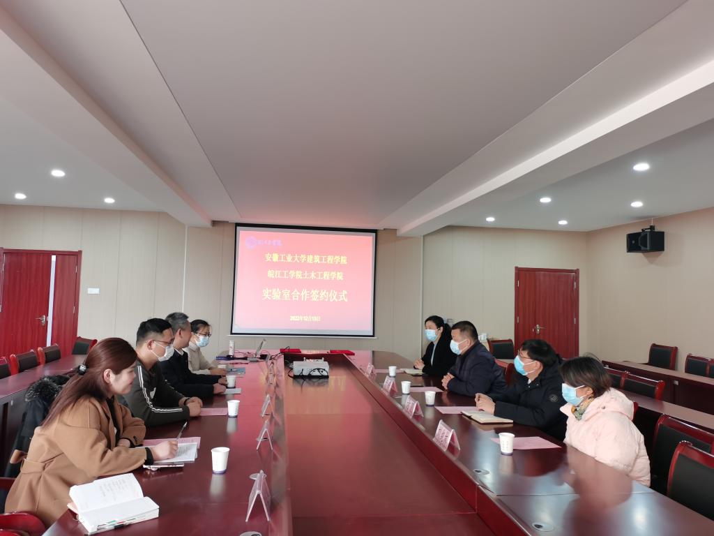 会上皖江工学院土木工程学院唐德高院长对色情a片于峰一行的到来表示热烈欢迎,并介绍了土木工程学院的基本情况;双方就安全工程专业的实验教学签订了合作协议,并就人才引进、本科教学、学科建设等方面进行了深入交流;最后,于峰一行参观了土木学院的实验室建设情况。皖江工学院教务部副部长黄翠、教务部实践科科长杨扬、土木工程学院实验中心主任丁东升、安全工程教研室主任李平等参加此次会议。