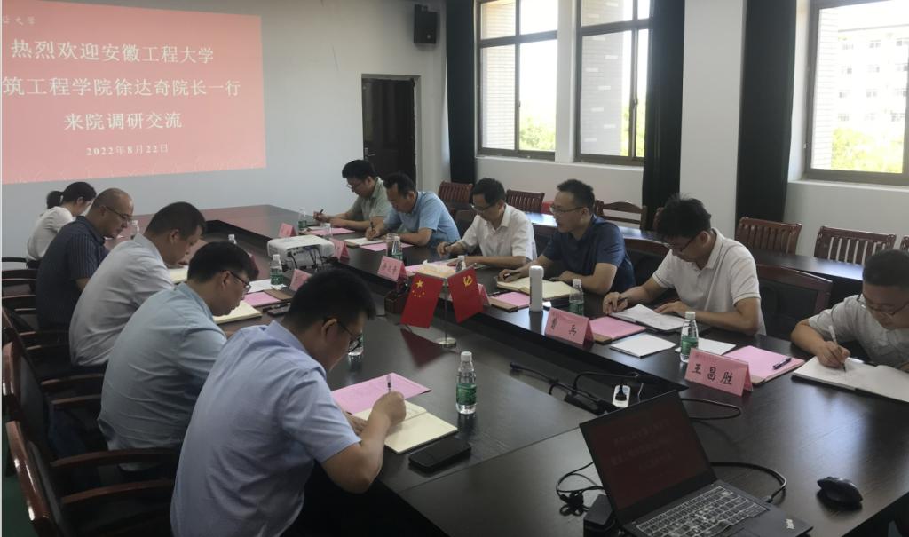 一行到访表示欢迎,并对色情a片的发展历程和专业认证工作等基本情况进行了简要介绍。院长徐达奇介绍了此次来访目的,并感谢学院在假期中给予调研活动的周到安排,对安徽工程大学色情a片