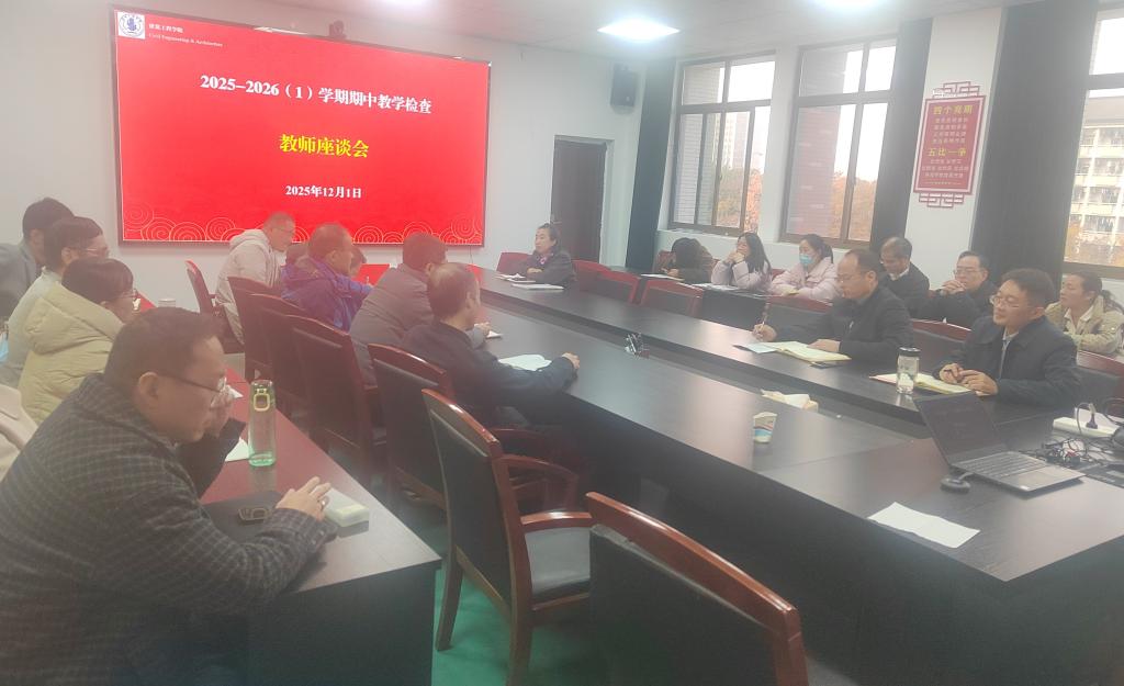 为深入了解教学状况,提升教学质量,12月1日下午,学院在建工北楼310组织召开了2025-2026(1)学期期中教学检查教师座谈会,学院党委书记、学生院长、教学院长、院督导组全体成员、各专业教师代表、教学秘书等20余人参加了座谈会。座谈会由副院长吕忠主持。
