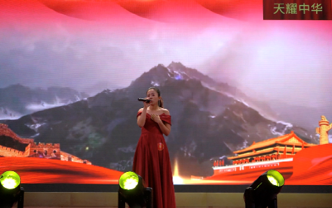 舞台上,倪雪老师精神饱满、真情投入,深情演绎了歌曲《天耀中华》,表达了中华儿女对祖国的真挚情感和深情祝愿,为中国共产党成立100周年献上祝福。(撰稿:朱庆明 审核:赵龙)